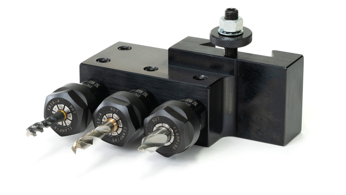 The Quickset GT gang tool holder boosts productivity on your turret or tool post lathe by maximizing your tooling capabilities
